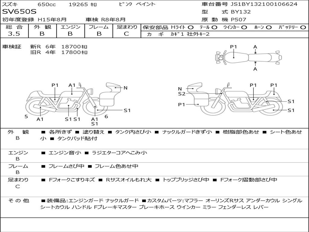 | Номер рамы / VIN | JS1BY132100106624 |