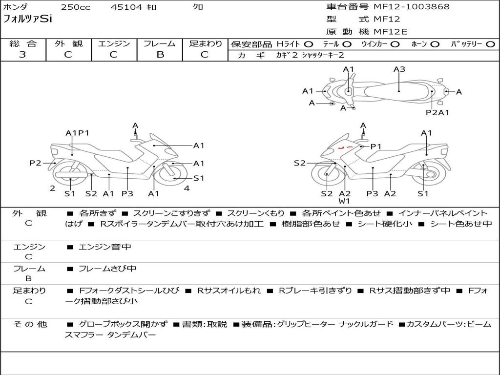 | Номер рамы / VIN | MF12-1003868 |