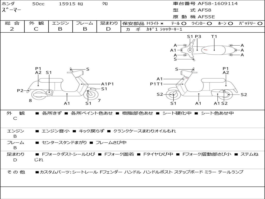 | Номер рамы / VIN | AF58-1609114 |