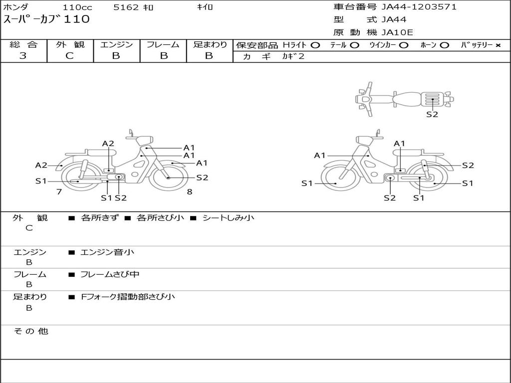 | Номер рамы / VIN | JA44-1203571 |