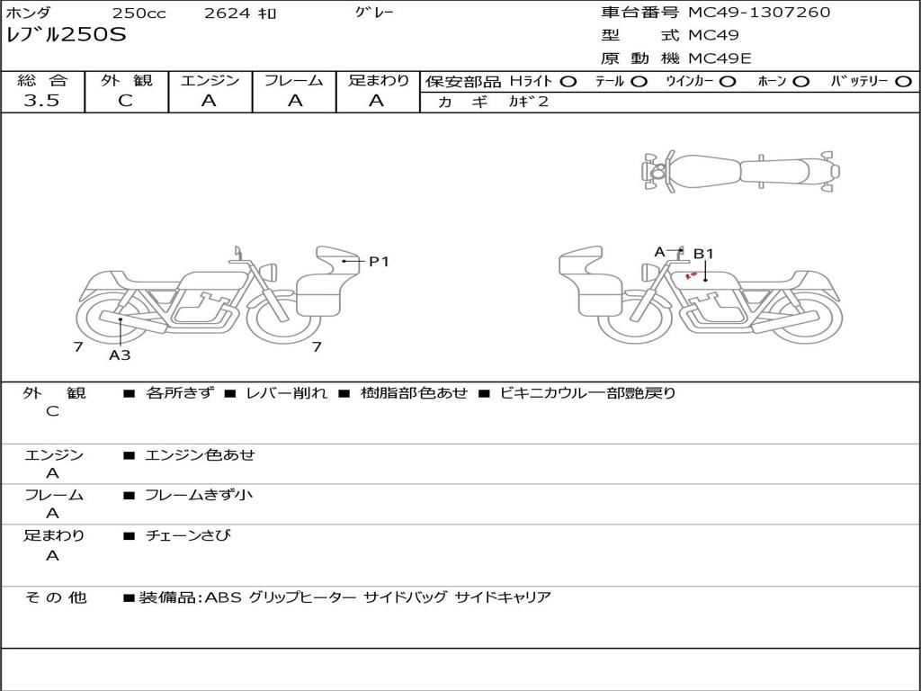 | Номер рамы / VIN | MC49-1307260 |