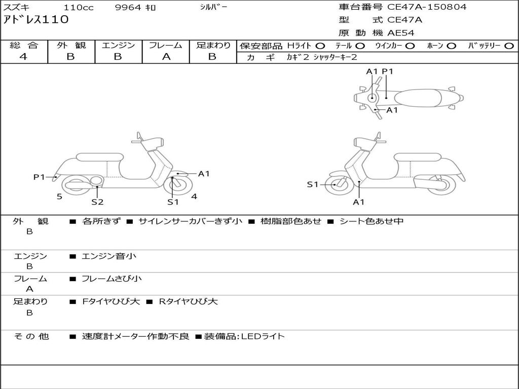 | Номер рамы / VIN | CE47A-150804 |