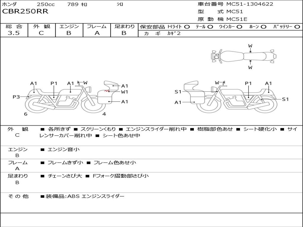| Номер рамы / VIN | MC51-1304622 |