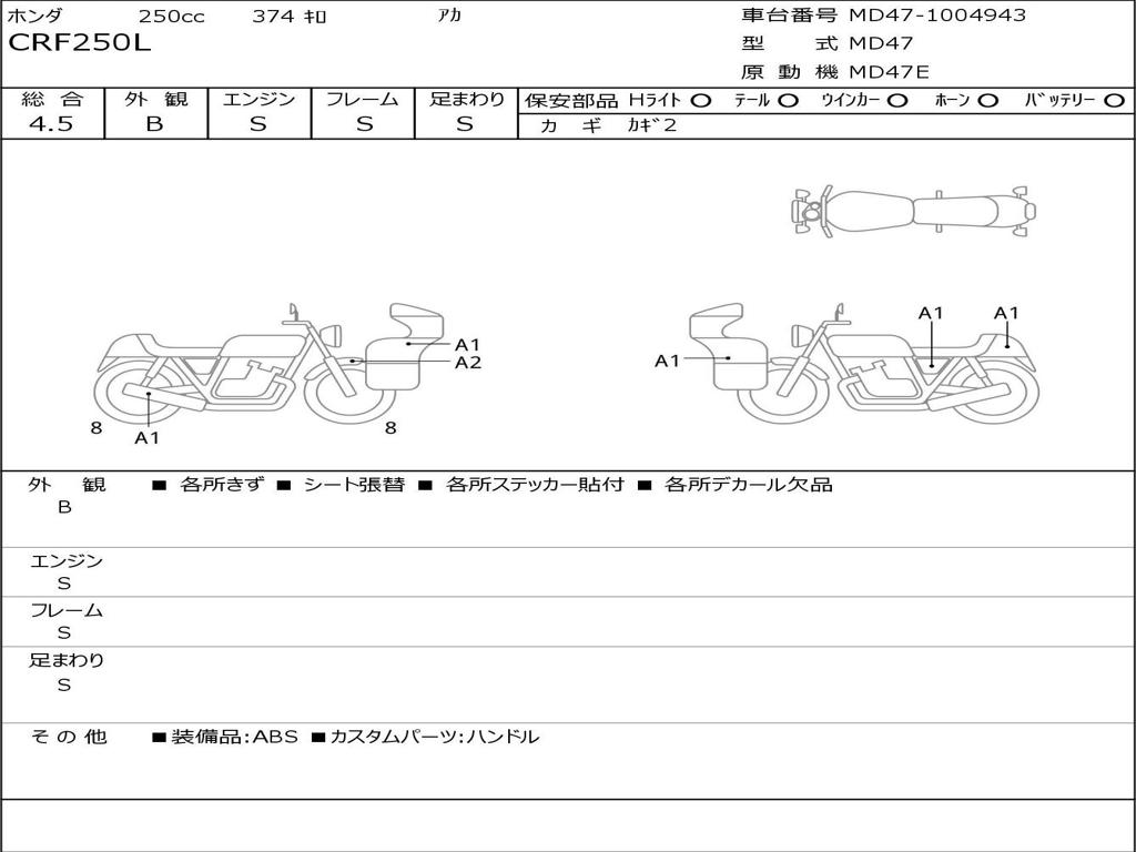 | Номер рамы / VIN | MD47-1004943 |