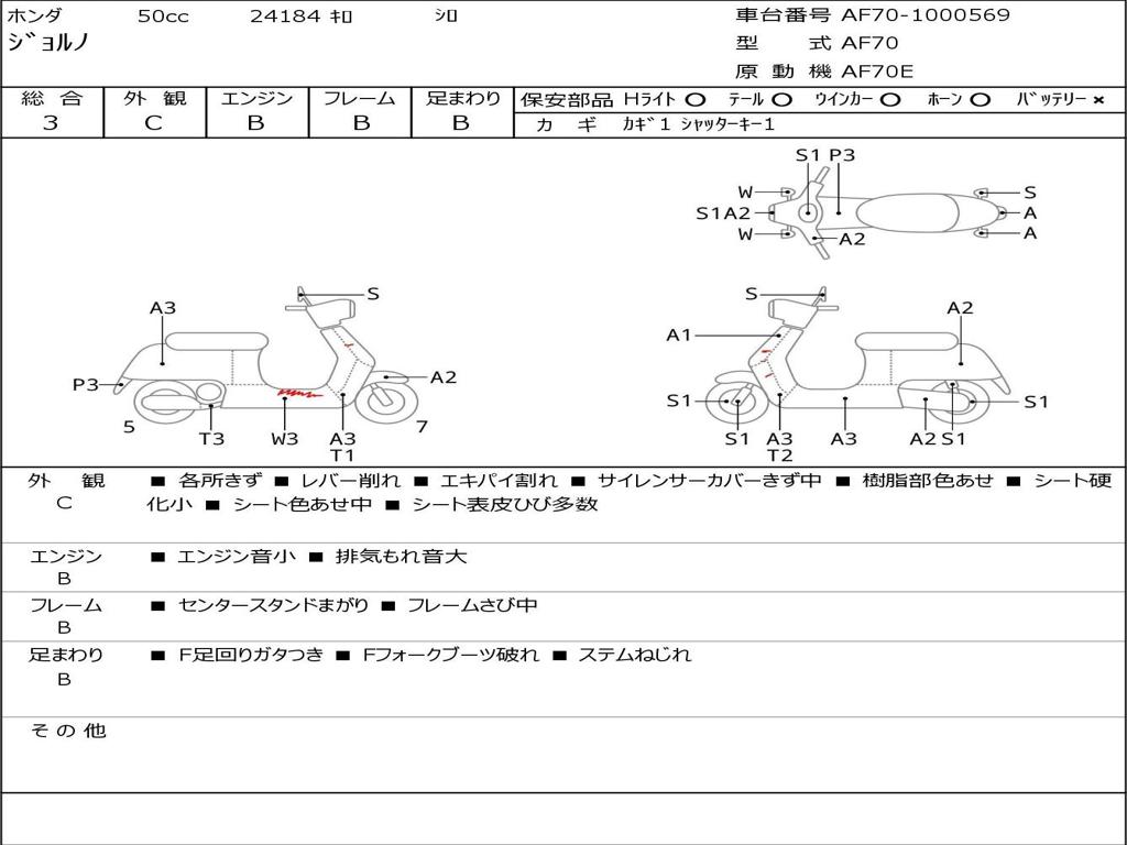 | Номер рамы / VIN | AF70-1000569 |