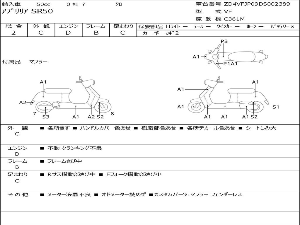 | Номер рамы / VIN | ZD4VFJP09DS002389 |