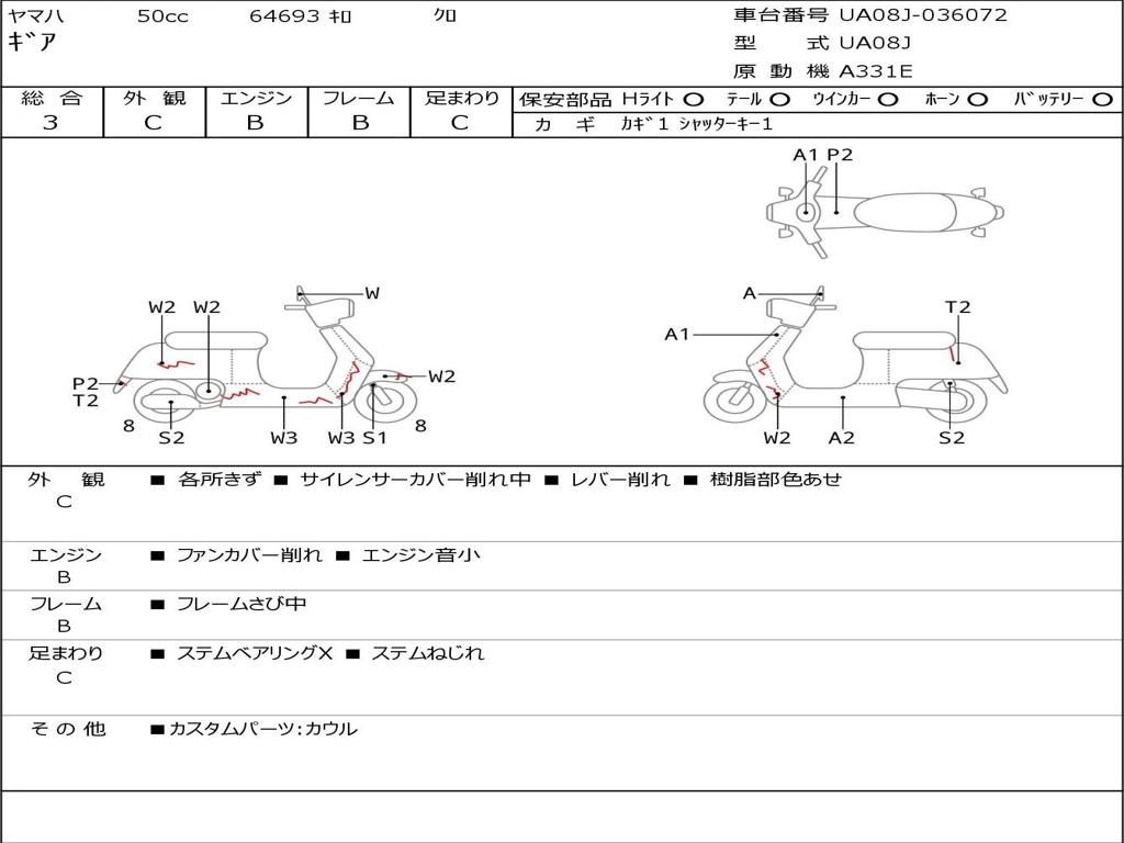 | Номер рамы / VIN | UA08J-036072 |