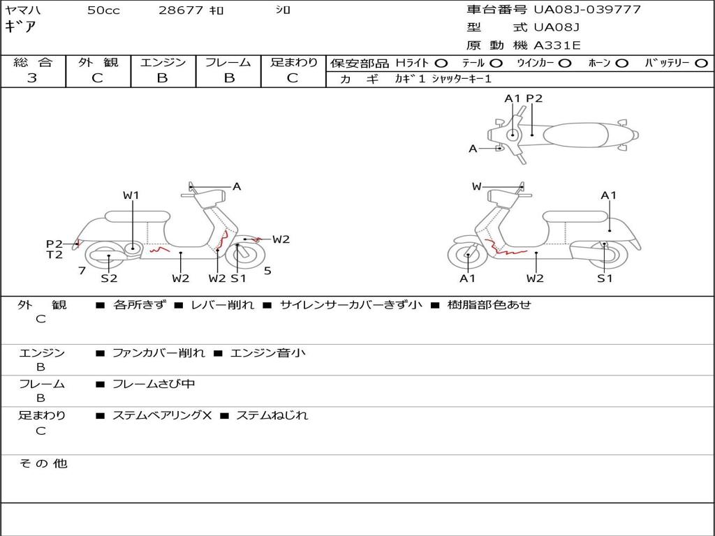 | Номер рамы / VIN | UA08J-039777 |
