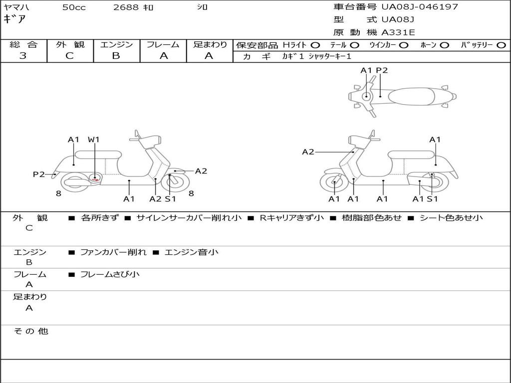 | Номер рамы / VIN | UA08J-046197 |