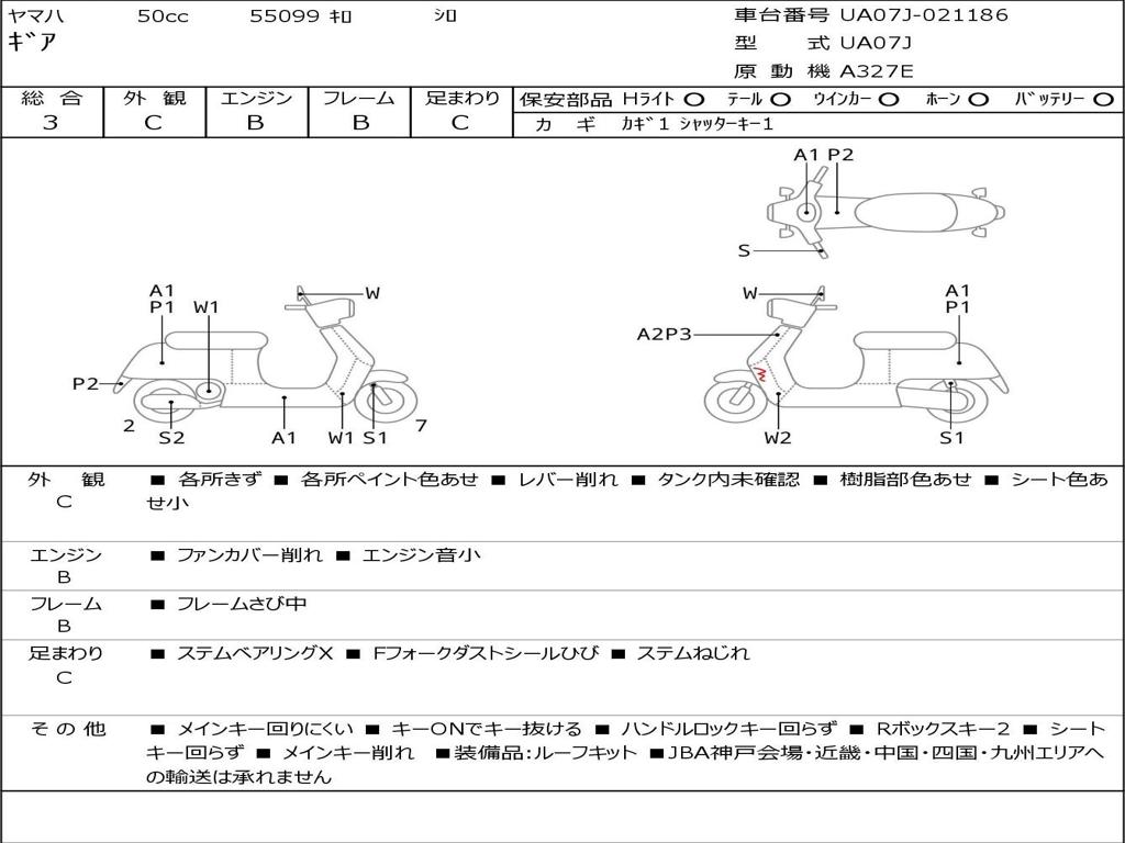 | Номер рамы / VIN | UA07J-021186 |