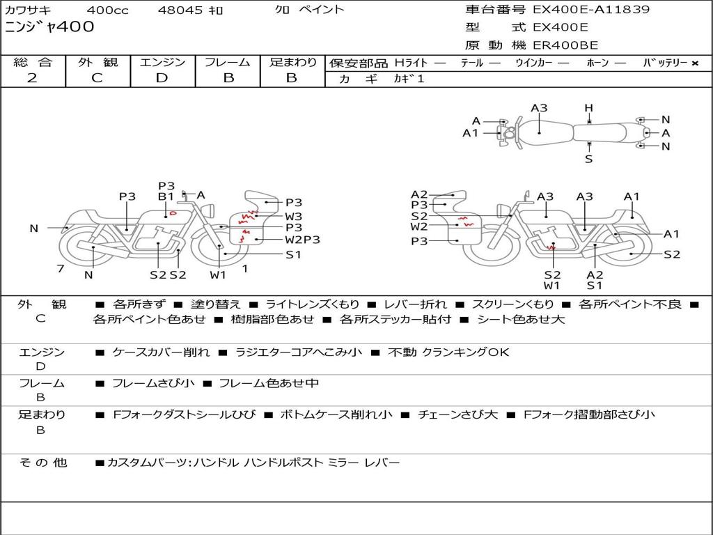 | Номер рамы / VIN | EX400E-A11839 |