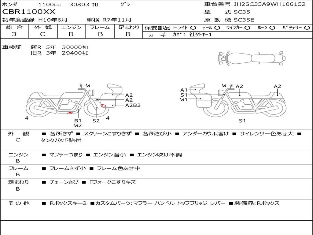 | Номер рамы / VIN | JH2SC35A9WM106152 |