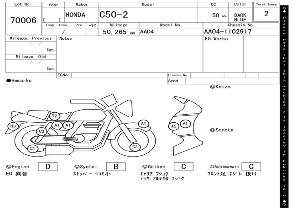 | Номер рамы / VIN | AA04-1102917 |