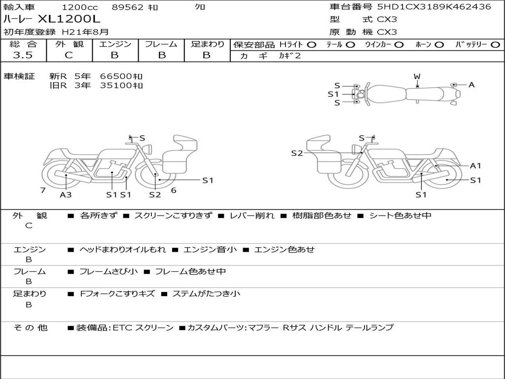 | Номер рамы / VIN | 5HD1CX3189K462436 |