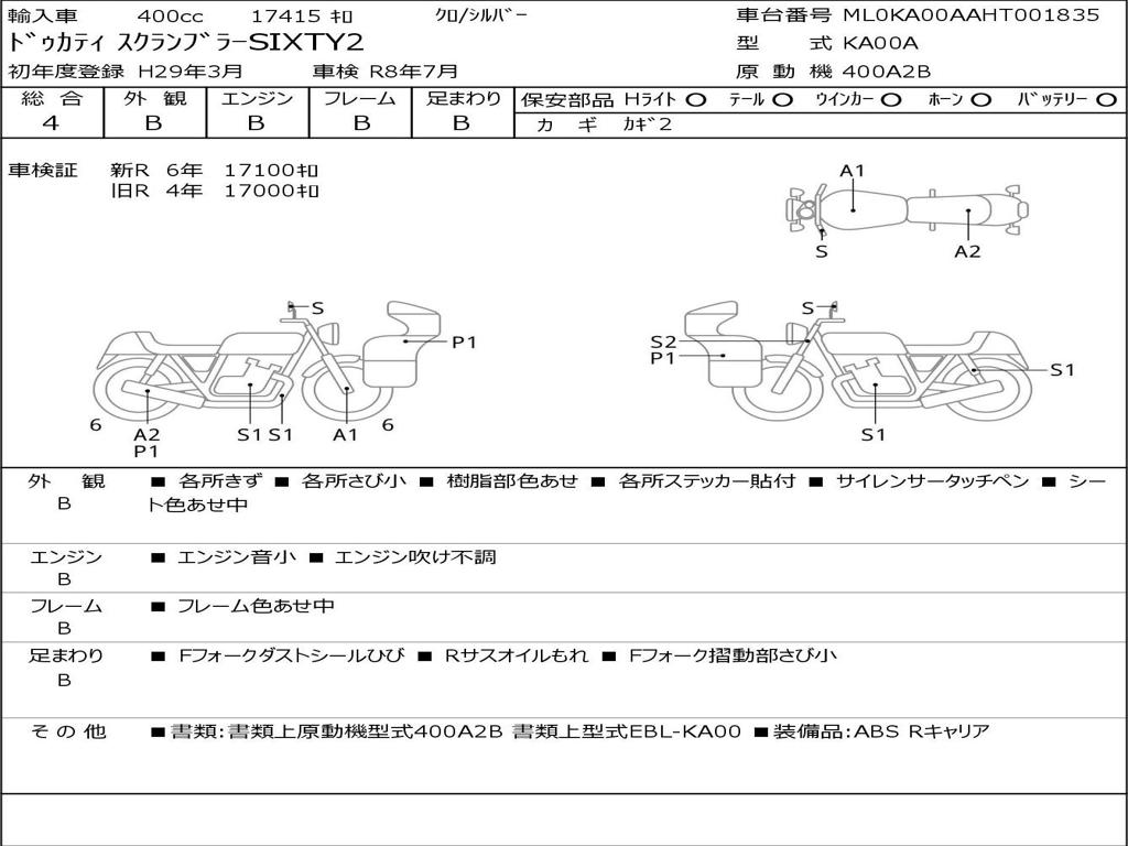 | Номер рамы / VIN | ML0KA00AAHT001835 |