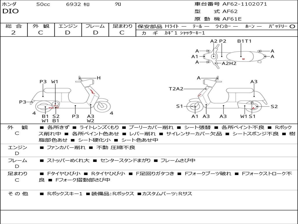 | Номер рамы / VIN | AF62-1102071 |