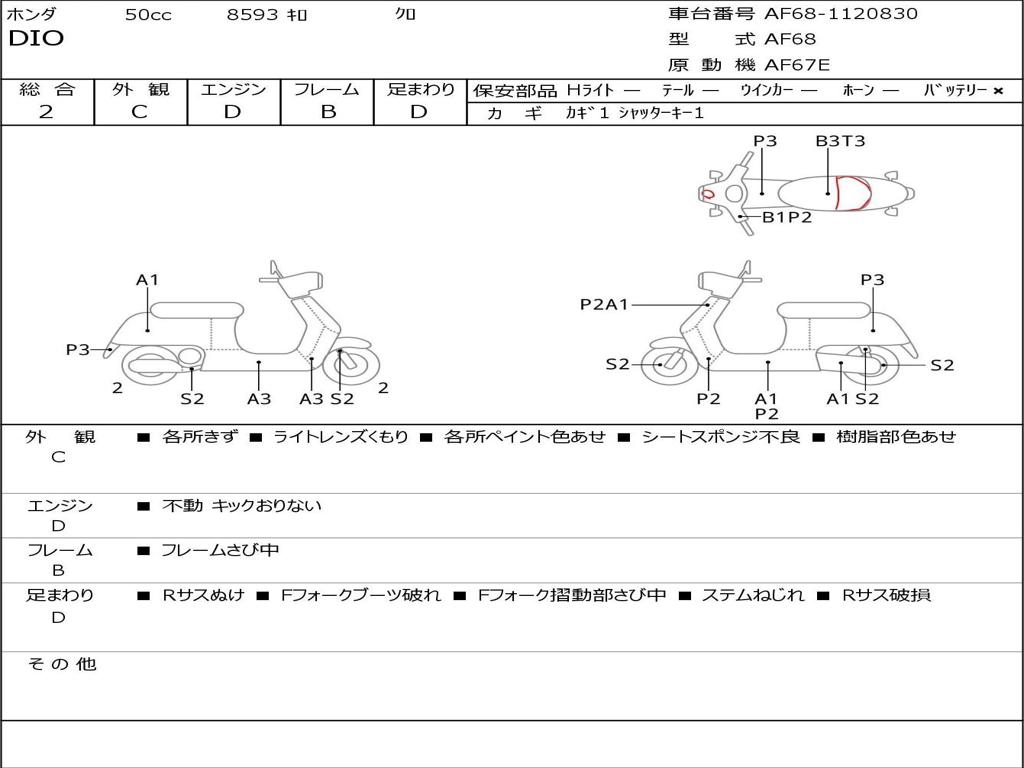 | Номер рамы / VIN | AF68-1120830 |