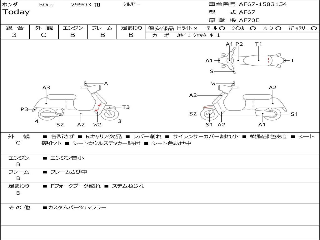 | Номер рамы / VIN | AF67-1583154 |