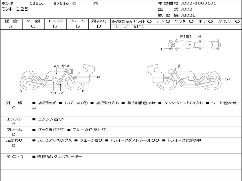 | Номер рамы / VIN | JB02-1003101 |