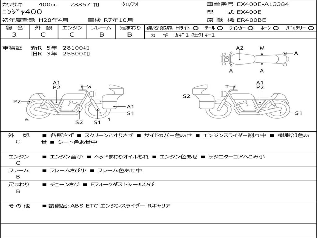 | Номер рамы / VIN | EX400E-A13384 |