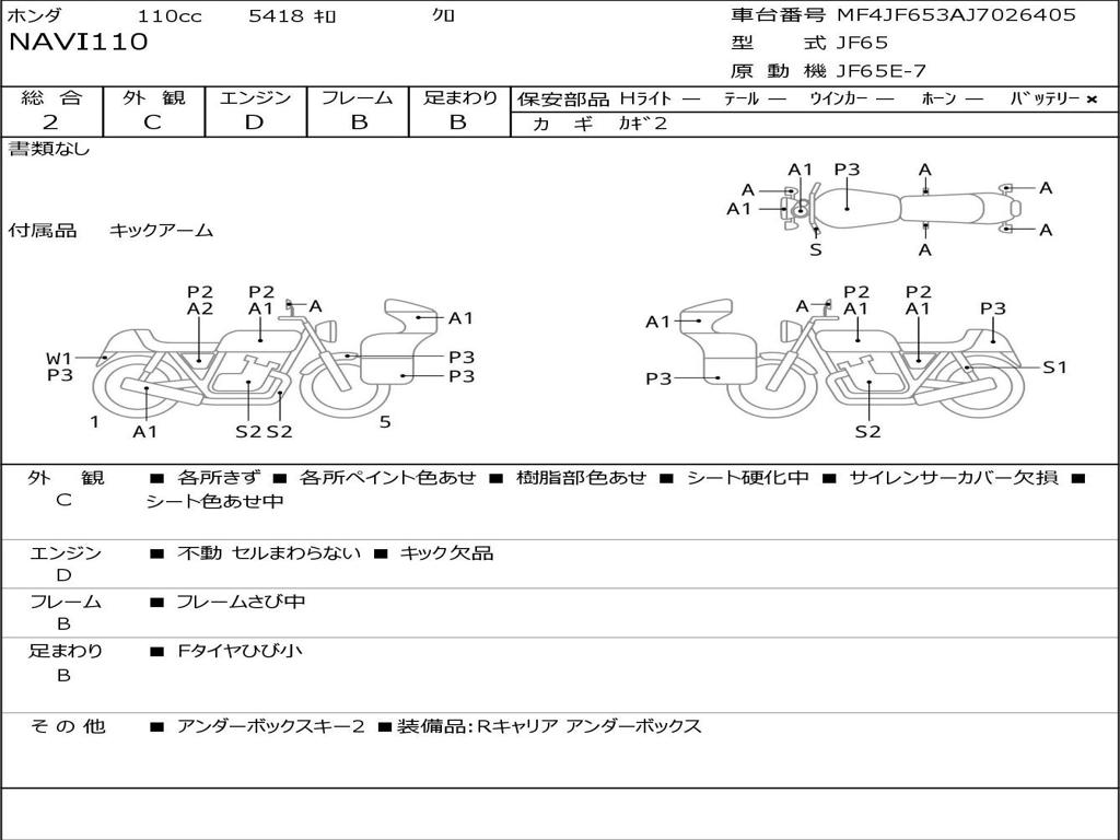 | Номер рамы / VIN | MF4JF653AJ7026405 |
