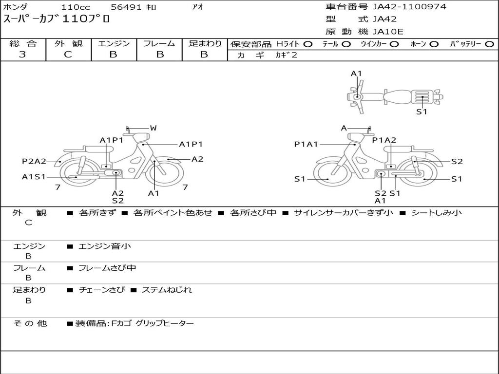 | Номер рамы / VIN | JA42-1100974 |