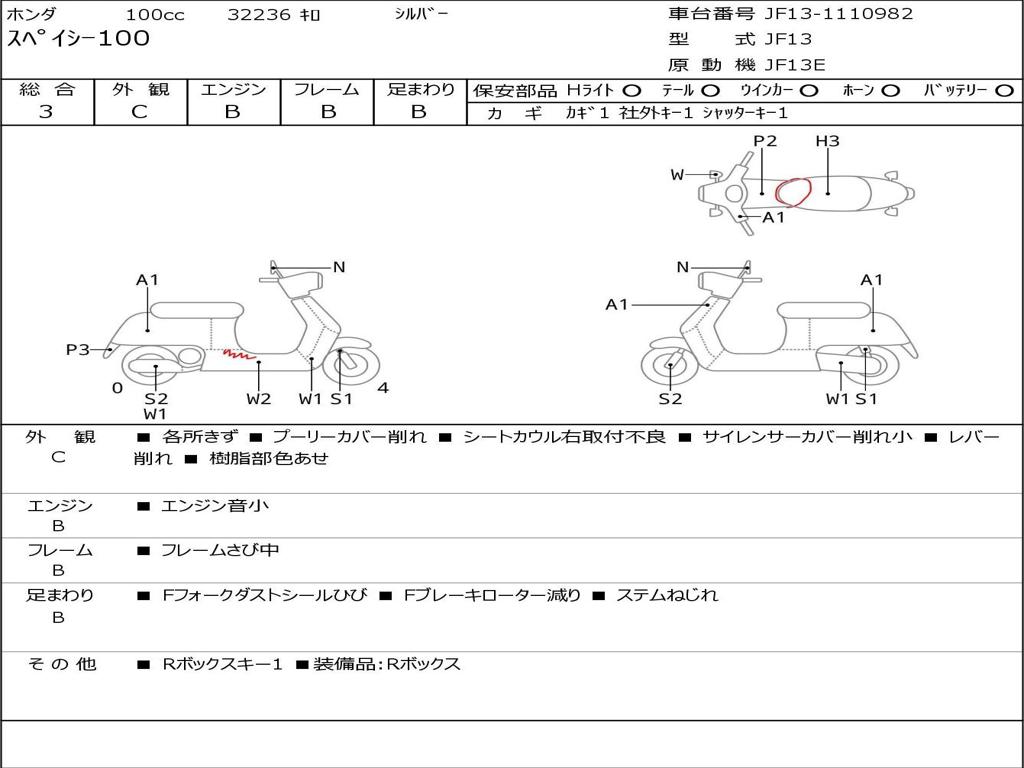 | Номер рамы / VIN | JF13-1110982 |