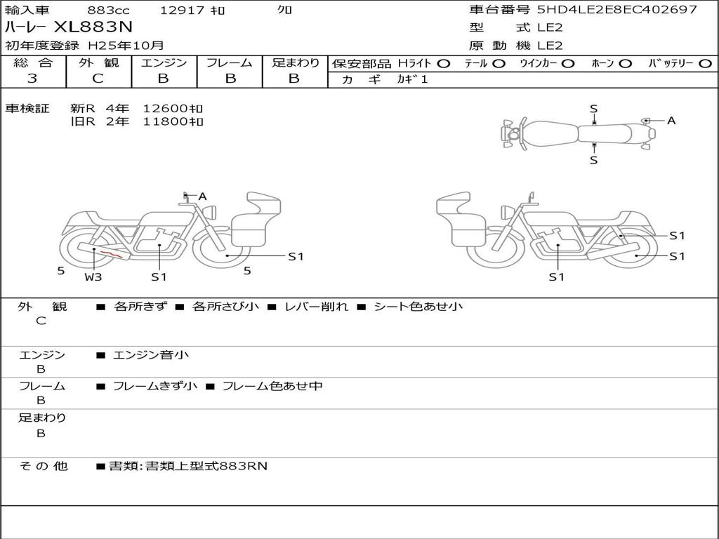 | Номер рамы / VIN | 5HD4LE2E8EC402697 |