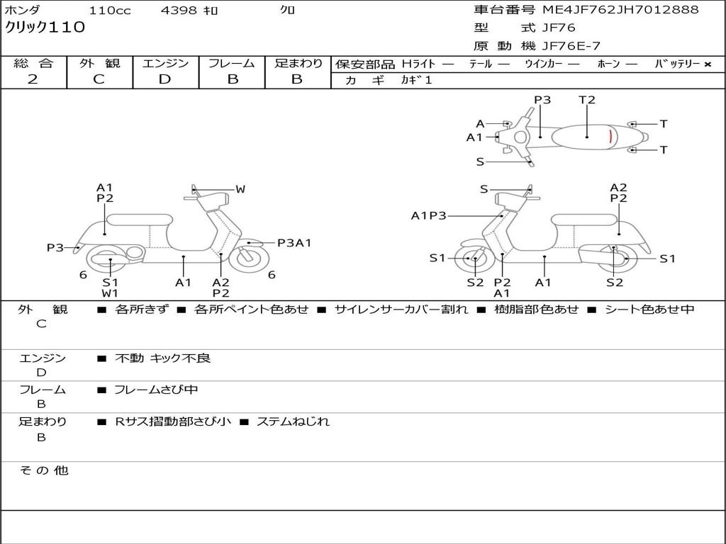 | Номер рамы / VIN | ME4JF762JH7012888 |