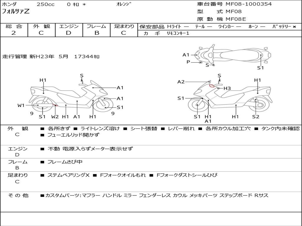 | Номер рамы / VIN | MF08-1000354 |
