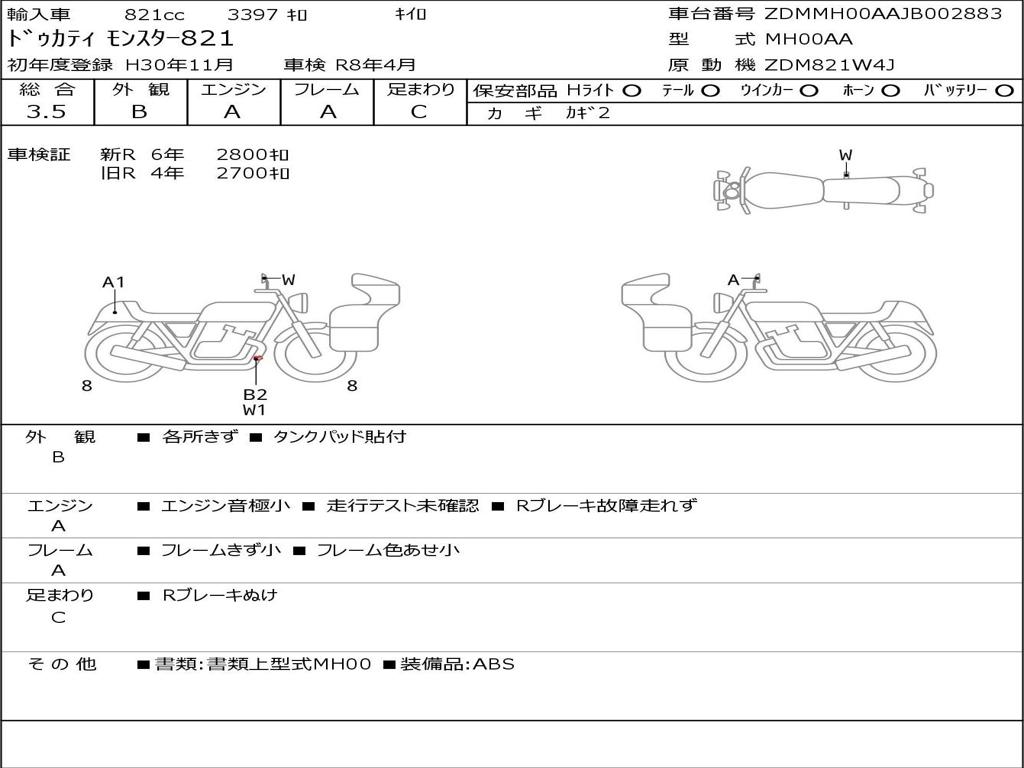 | Номер рамы / VIN | ZDMMH00AAJB002883 |