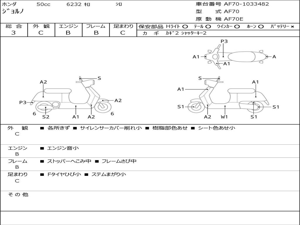| Номер рамы / VIN | AF70-1033482 |