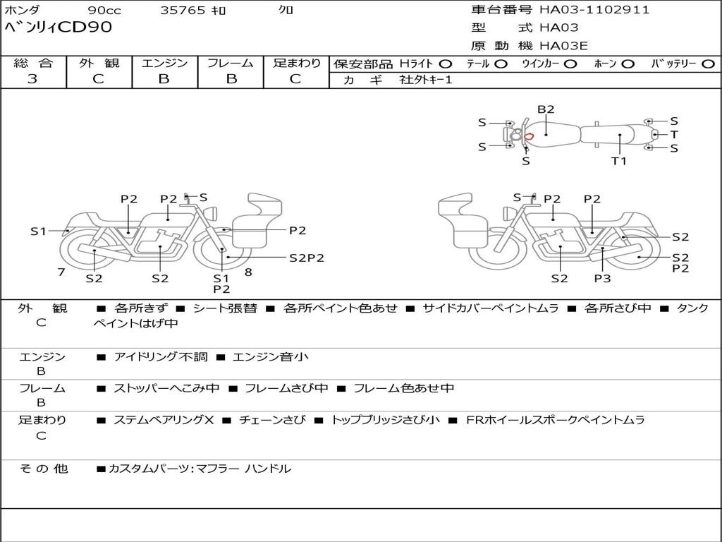 | Номер рамы / VIN | HA03-1102911 |