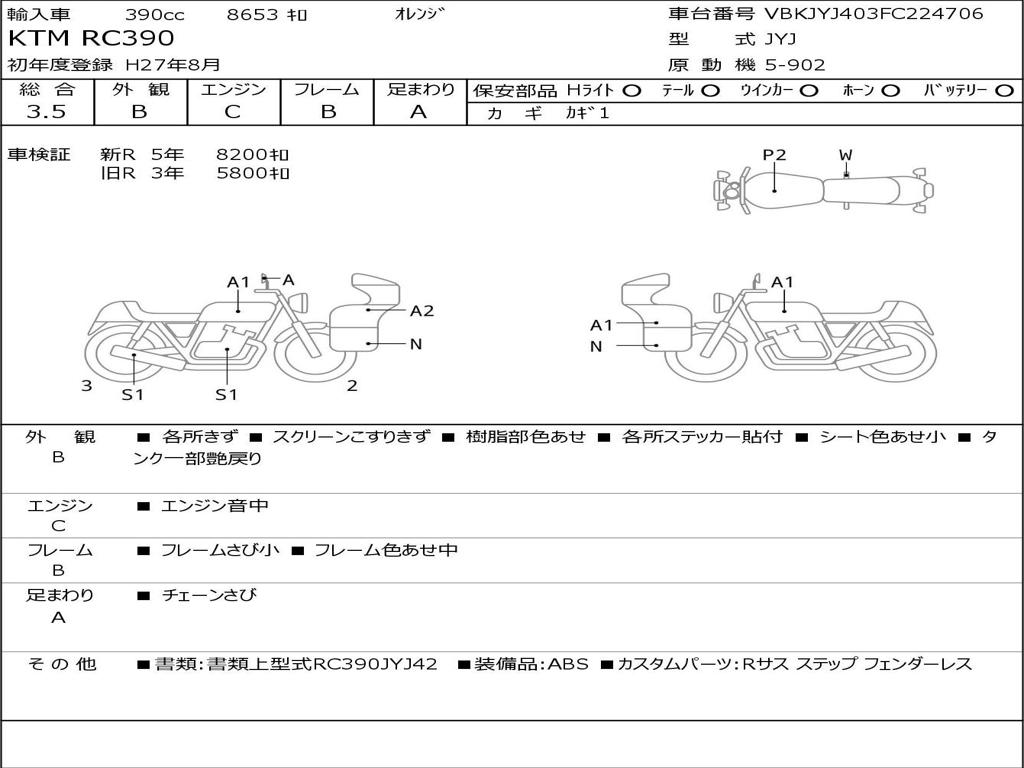 | Номер рамы / VIN | VBKJYJ403FC224706 |