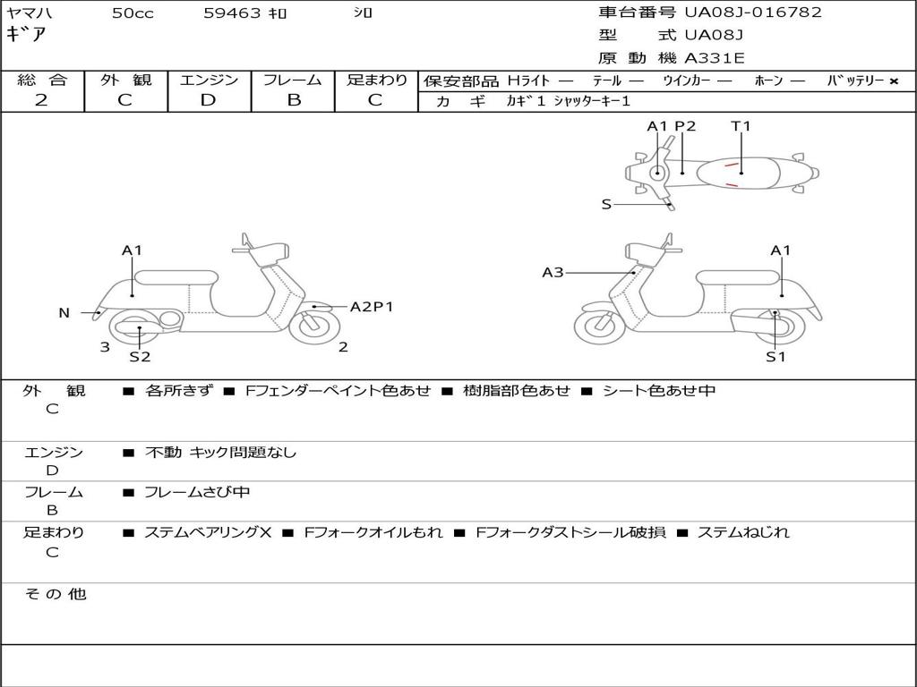 | Номер рамы / VIN | UA08J-016782 |