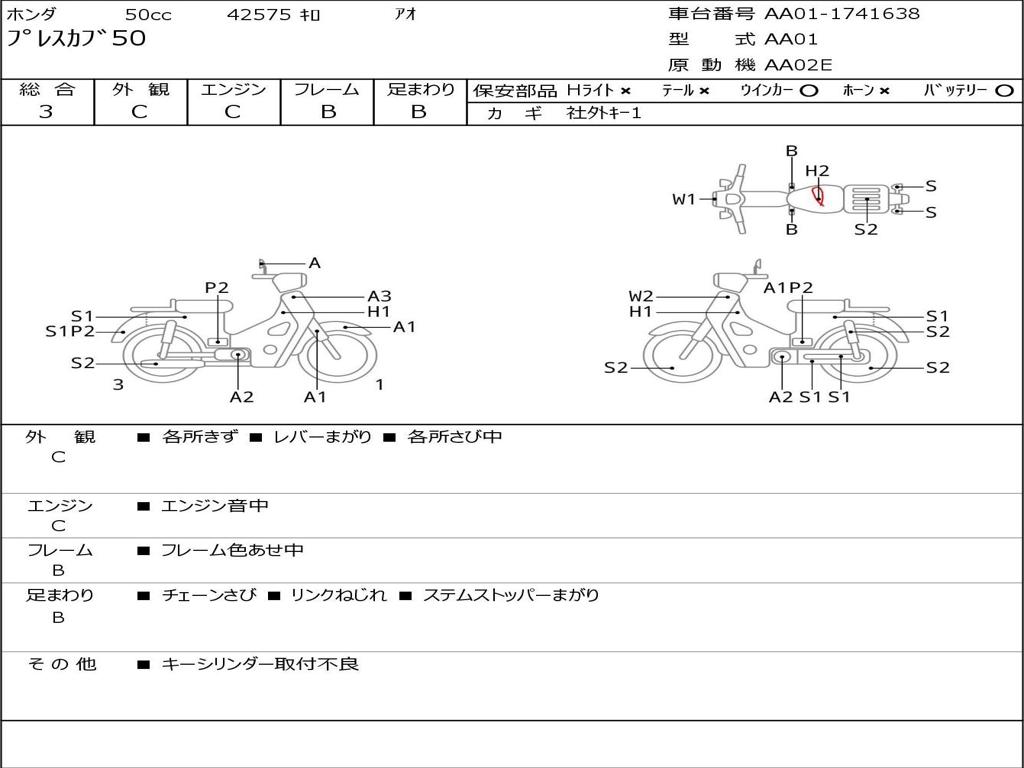 | Номер рамы / VIN | AA01-1741638 |