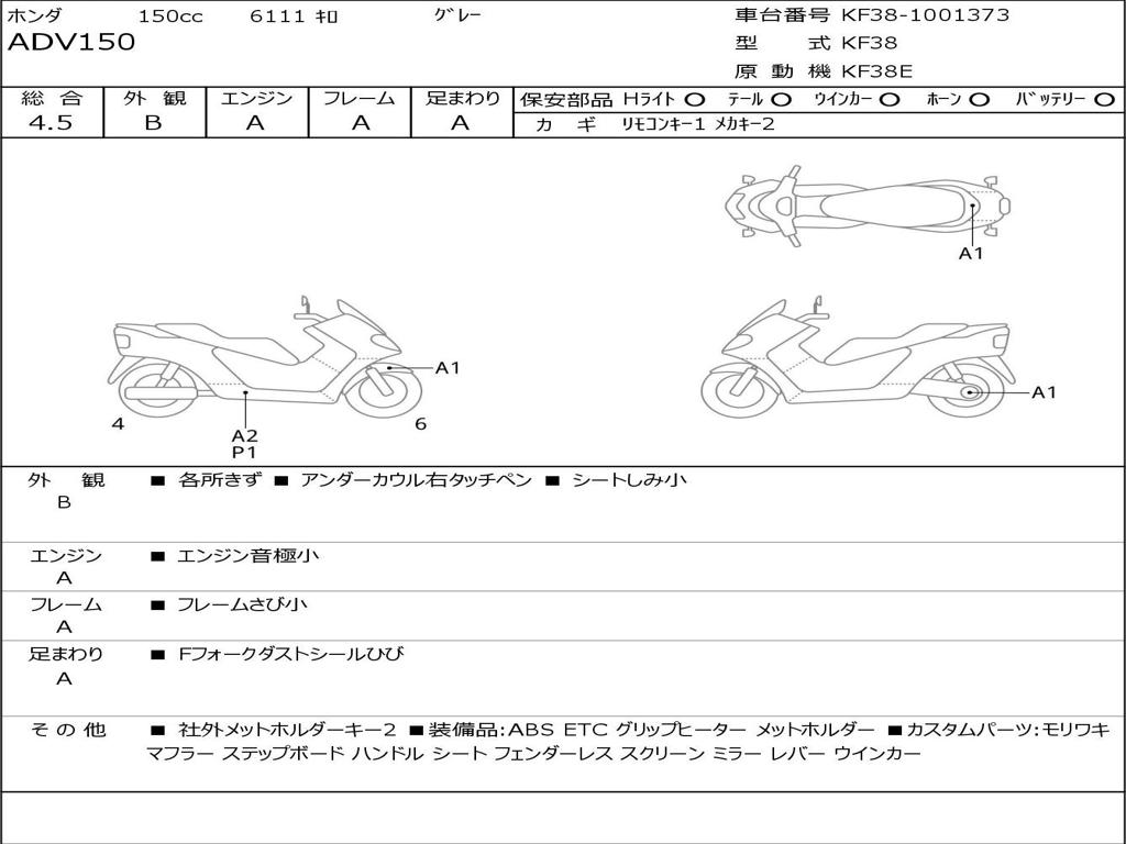 | Номер рамы / VIN | KF38-1001373 |