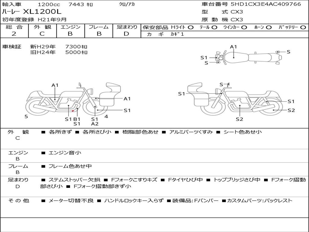 | Номер рамы / VIN | 5HD1CX3E4AC409766 |