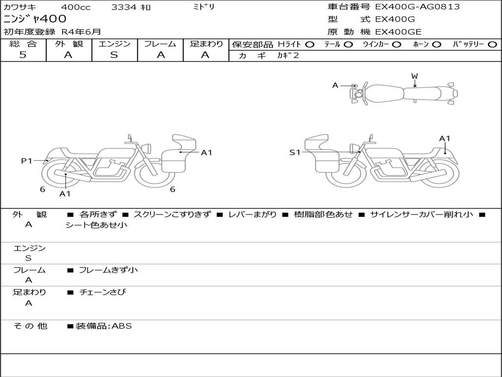 | Номер рамы / VIN | EX400G-AG0813 |