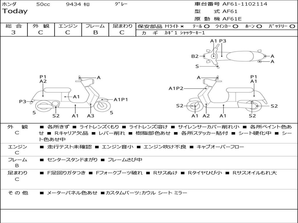 | Номер рамы / VIN | AF61-1102114 |