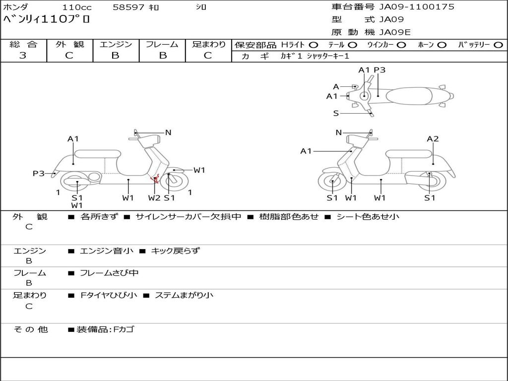 | Номер рамы / VIN | JA09-1100175 |