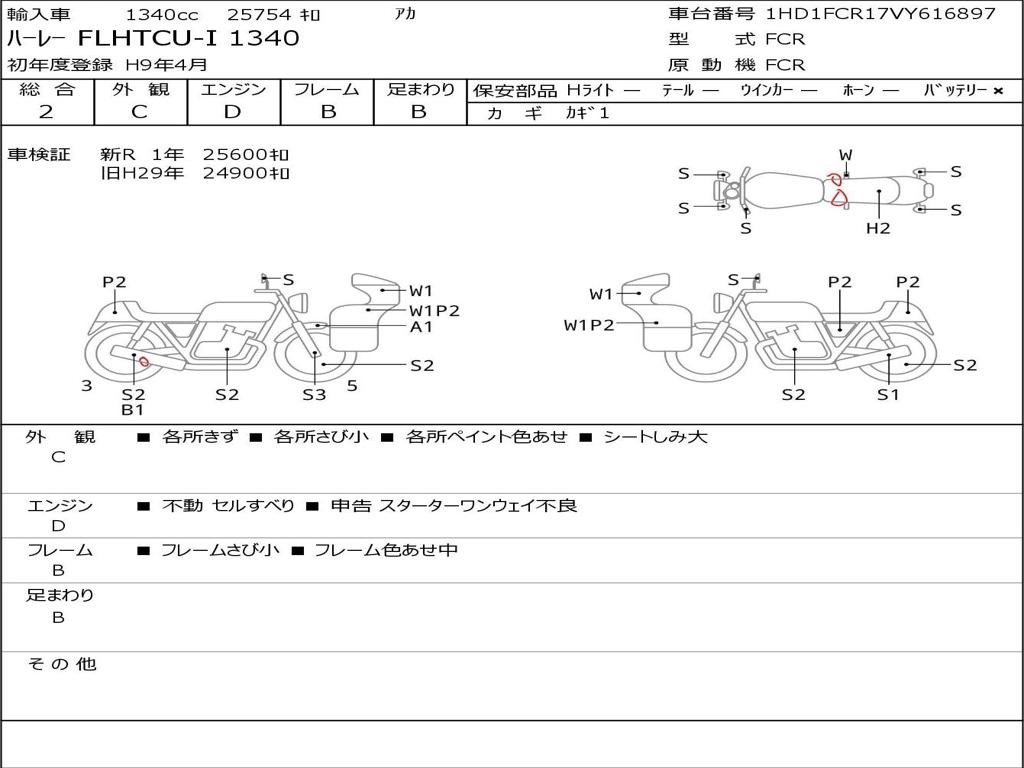| Номер рамы / VIN | 1HD1FCR17VY616897 |