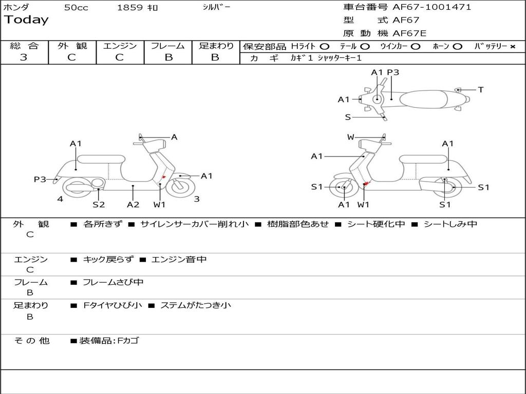 | Номер рамы / VIN | AF67-1001471 |