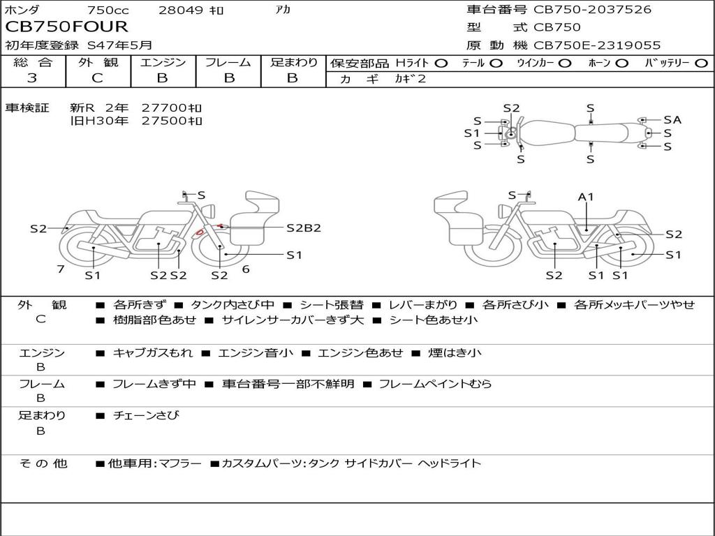 | Номер рамы / VIN | CB750-2037526 |