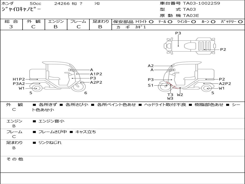 | Номер рамы / VIN | TA03-1002259 |