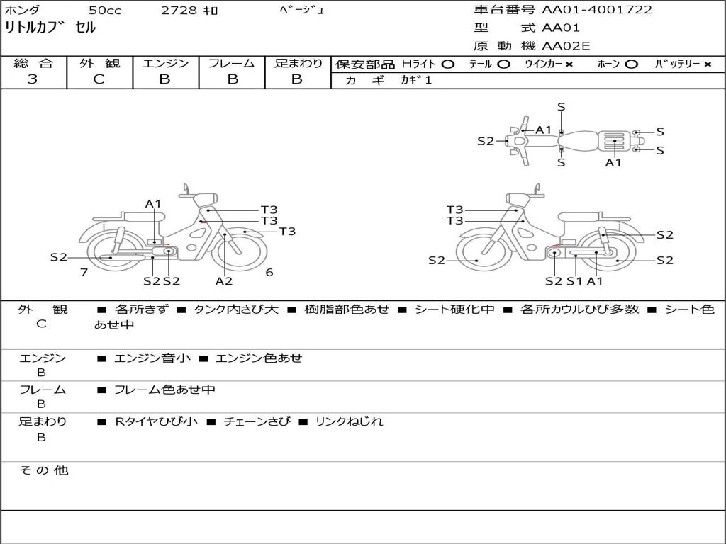 | Номер рамы / VIN | AA01-4001722 |