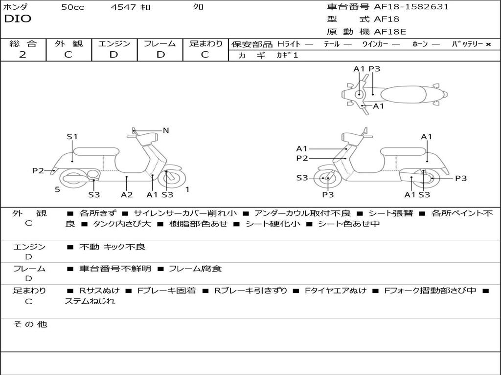 | Номер рамы / VIN | AF18-1582631 |