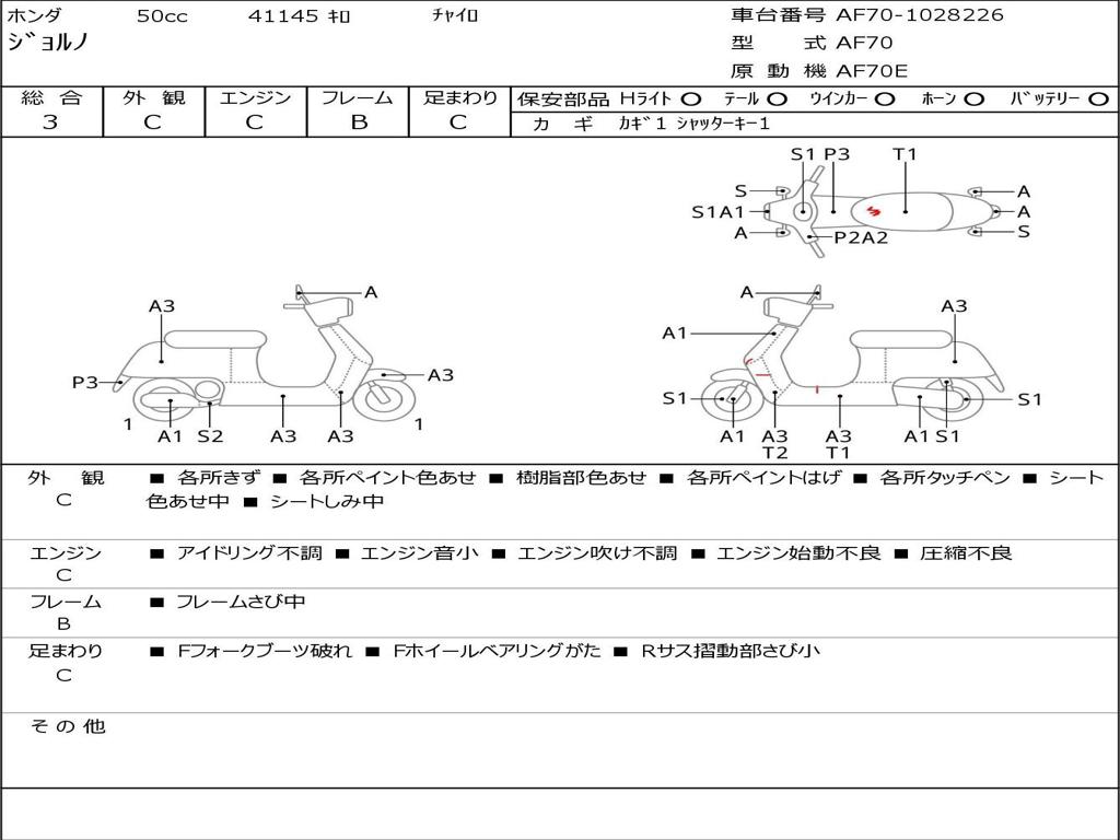 | Номер рамы / VIN | AF70-1028226 |