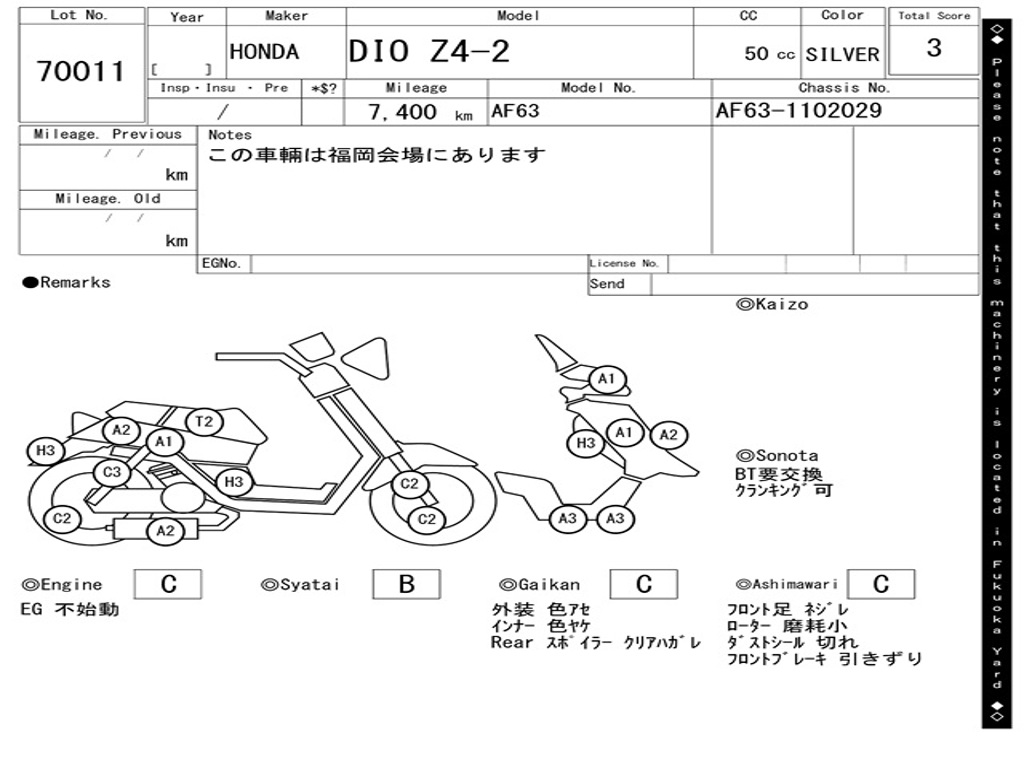 | Номер рамы / VIN | AF63-1102029 |