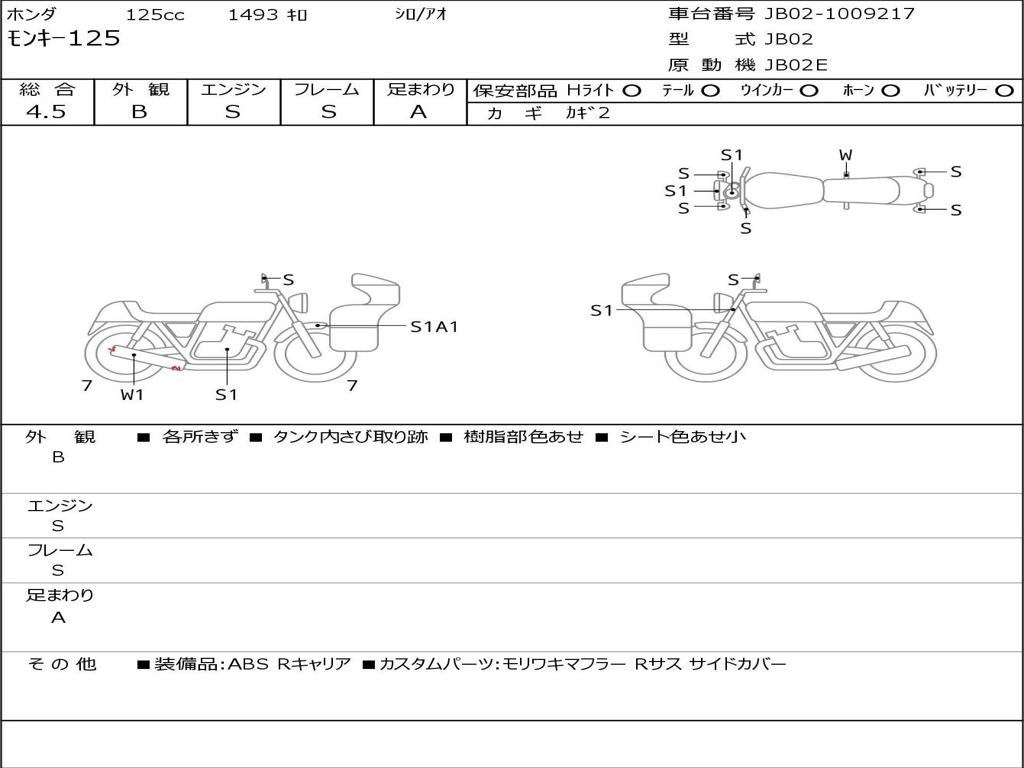 | Номер рамы / VIN | JB02-1009217 |